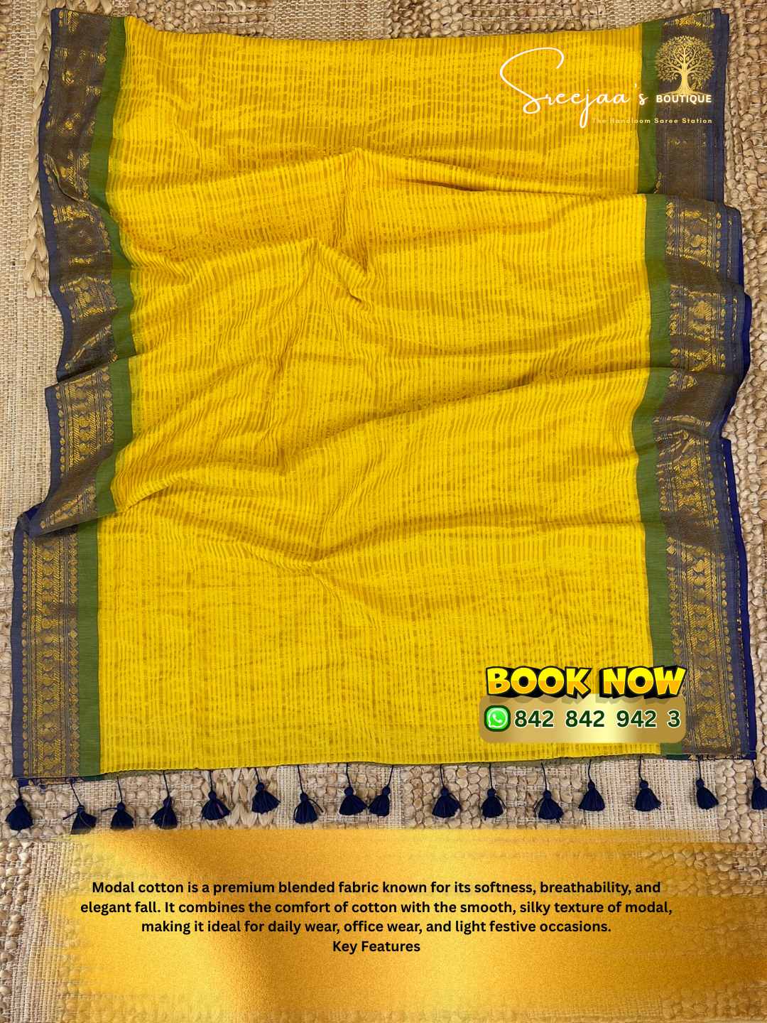Introducing our Premium Handloom Modal Cotton Saree, designed for women who appreciate comfort, elegance, and everyday luxury. Woven with fine-quality modal cotton, this saree offers a soft touch, lightweight feel, and a graceful drape that enhances your natural style.